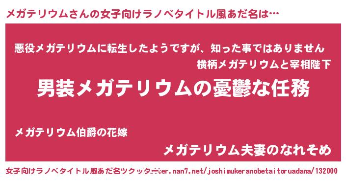 | 男性向けラノベタイトル風あだ名 | 『冴えないメガテリウムの育てかた』 |
