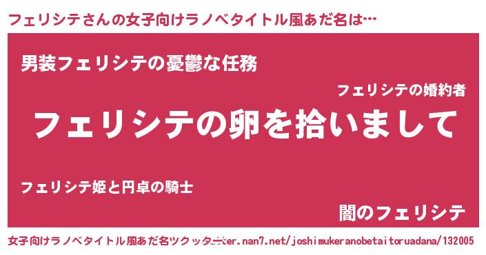 | 男性向けラノベタイトル風あだ名 | 『ダンジョンにフェリシテを求めるのは間違っているだろうか』 |
