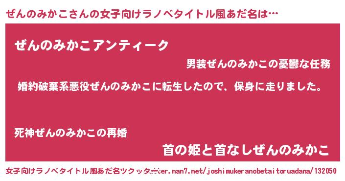 | 男性向けラノベタイトル風あだ名 | 『ゼンノミカコスレイヤー』 |