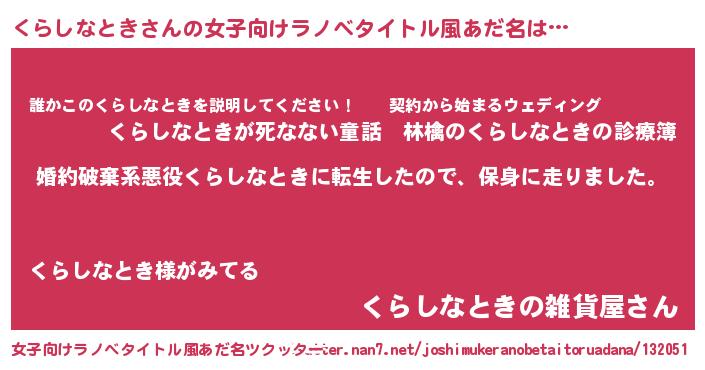 | 胡散臭い通販商品みたいなあだ名 | 『モテモテ間違いなし水晶球…その名も「くらしなとき」』 |