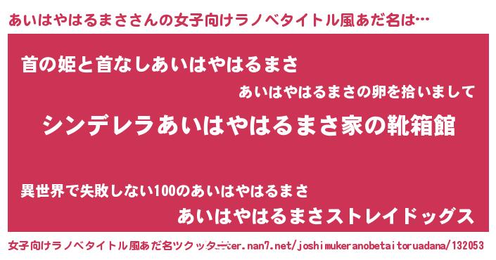 | 意味不明あだ名 | 『自称あいはやはるまさ』 |