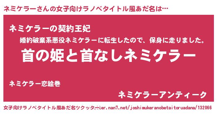| 男性向けラノベタイトル風あだ名 | 『はたらくネミケラーさま!』 |