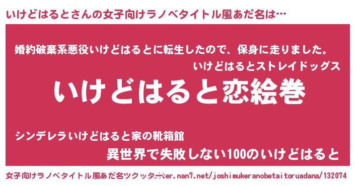 | ヒーロー風カッコイイあだ名 | 『慈愛の使者いけどはると』 |
