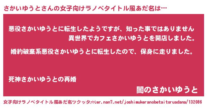 | ヘコむあだ名 | 『さかいゆうと(笑)』『さかを』 |