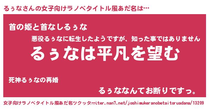 | 胡散臭い通販商品みたいなあだ名 | 『信頼と実績のペンダント…その名も「るぅな」』 |
