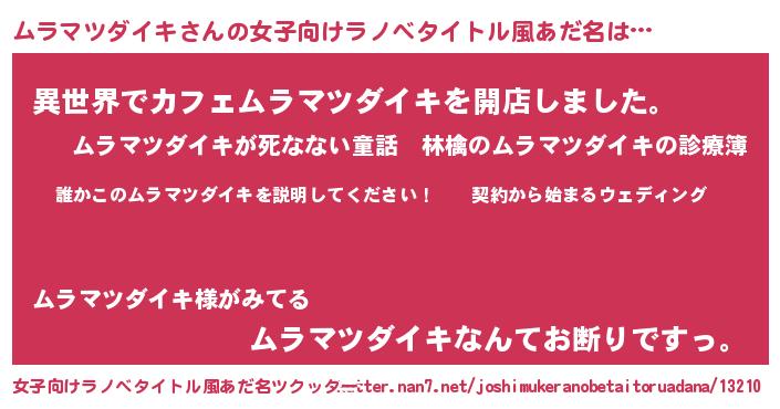 | 胡散臭い通販商品みたいなあだ名 | 『億万長者になれるブレスレット…その名も「ムラマツダイキ」』 |