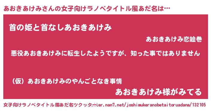 | 男性向けラノベタイトル風あだ名 | 『この素晴らしい世界にあおきあけみを!』 |
