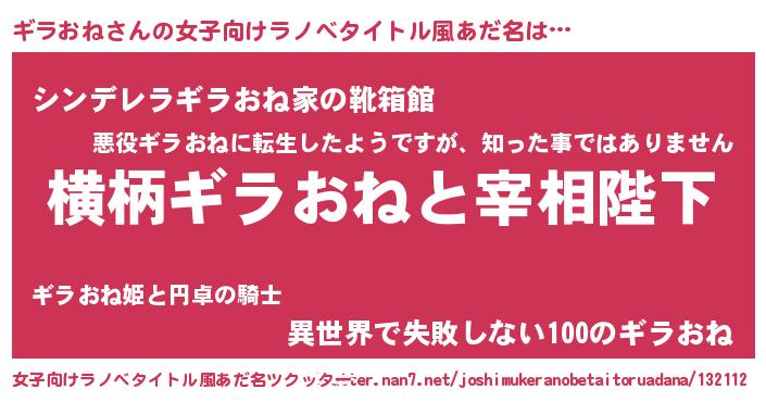 | ヘコむあだ名 | 『ギラおね(笑)』『ギラふぇ~』 |
