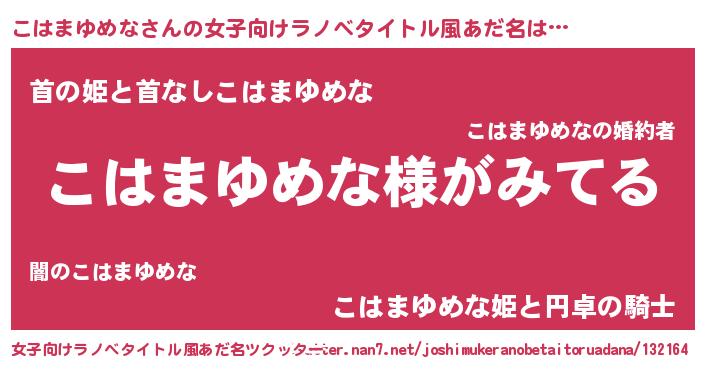 | 意味不明あだ名 | 『とにかく怪しいこはまゆめな』 |