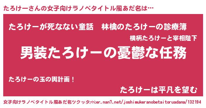 | 意味不明あだ名 | 『住所不定無職たろけー(5歳)』 |