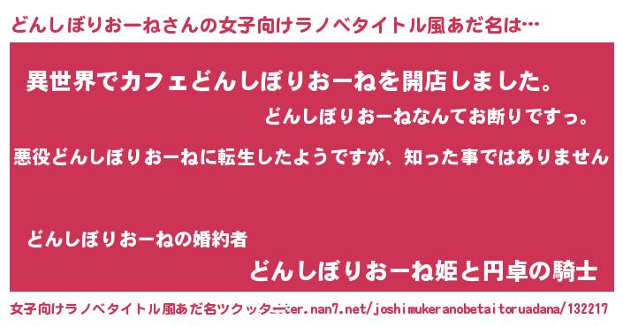| 男性向けラノベタイトル風あだ名 | 『この素晴らしい世界にどんしぼりおーねを!』 |