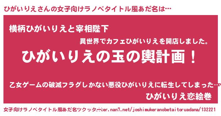 | ヘコむあだ名 | 『ひがいりえ(震え声)』『ひがにゅー』 |