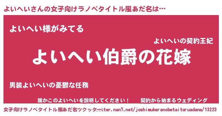 | 男性向けラノベタイトル風あだ名 | 『やはりよいへいの青春ラブコメはまちがっている 』 |
