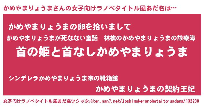 | 胡散臭い通販商品みたいなあだ名 | 『信頼と実績のネックレス…その名も「かめやまりょうま」』 |