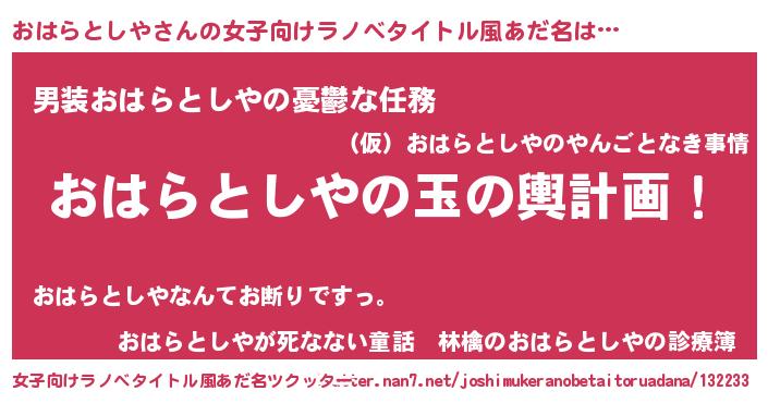 | 男性向けラノベタイトル風あだ名 | 『転生したらおはらとしやだった件』 |