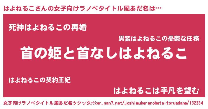 | 伝説のあだ名 | 『魔王と互角に渡り合う占い師はよねるこ』 |