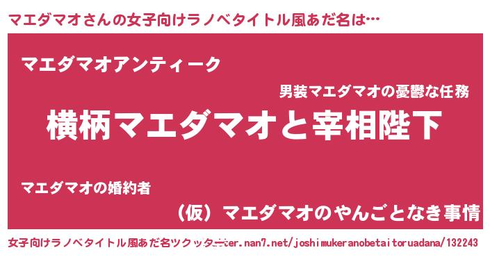 | 男性向けラノベタイトル風あだ名 | 『マエダマオに滅ぼされるだけの簡単なお仕事です』 |