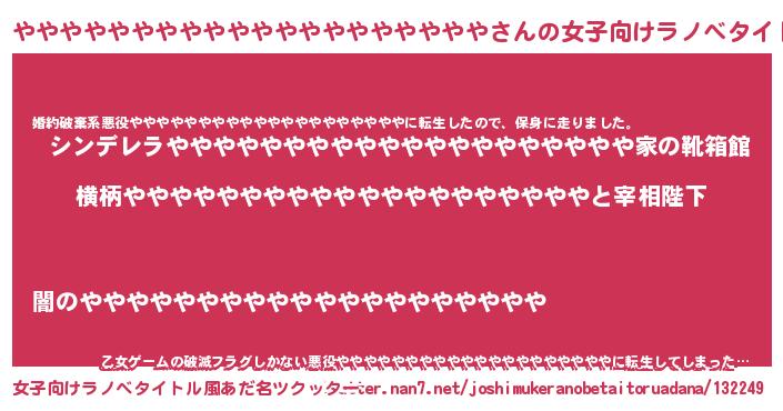 | 男性向けラノベタイトル風あだ名 | 『ややややややややややややややややややややに滅ぼされるだけの簡単なお仕事です』 |