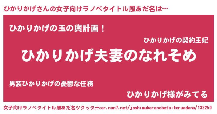 | 男性向けラノベタイトル風あだ名 | 『おまえをオタクにしてやるから、俺をひかりかげにしてくれ! 』 |