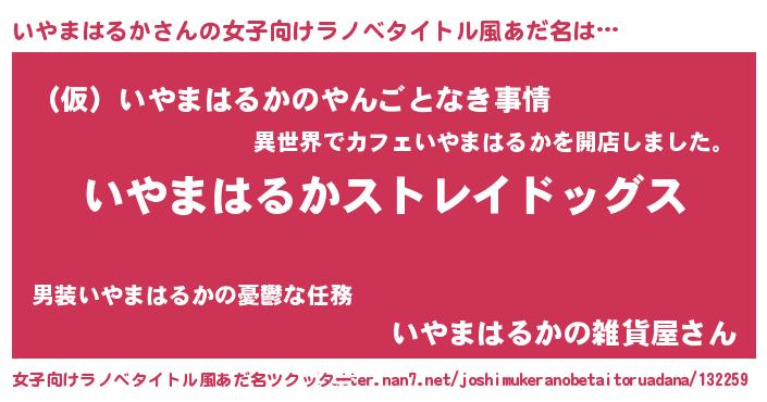 | 男性向けラノベタイトル風あだ名 | 『Re:いやまはるかから始める異世界生活』 |