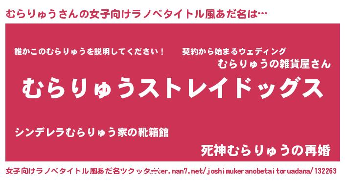 | 肩書あだ名 | 『むらりゅう総統』『むらりゅう社長令嬢』 |