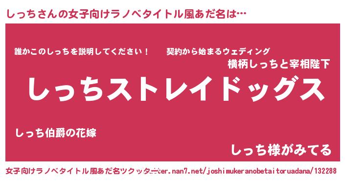 | 男性向けラノベタイトル風あだ名 | 『Re:しっちから始める異世界生活』 |