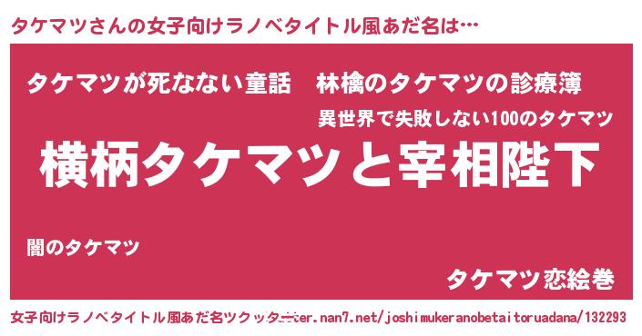 | 男性向けラノベタイトル風あだ名 | 『タケマツに滅ぼされるだけの簡単なお仕事です』 |