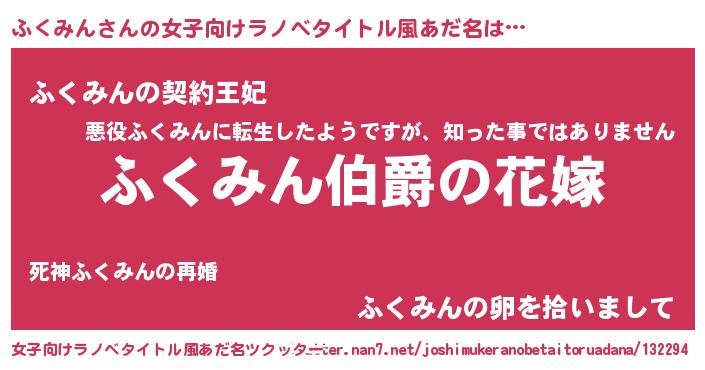 | 男性向けラノベタイトル風あだ名 | 『やはりふくみんの青春ラブコメはまちがっている 』 |