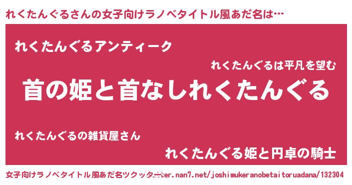 | 意味不明あだ名 | 『自称れくたんぐる』 |