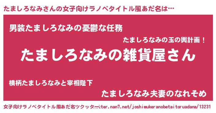 | 意味不明あだ名 | 『たましろなみフォーエバー』 |