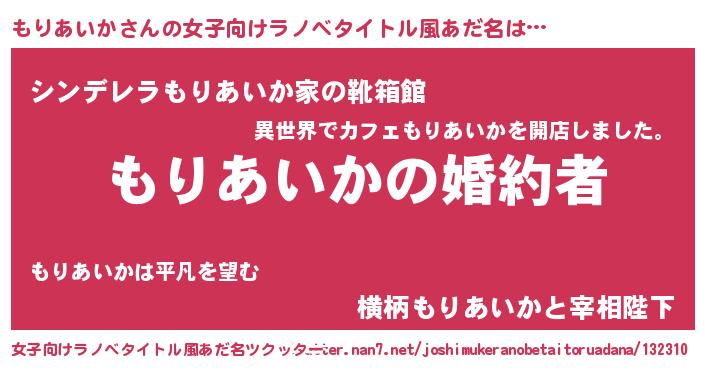 | 胡散臭い通販商品みたいなあだ名 | 『運命の人と巡り会える高級そうな壺…その名も「もりあいか」』 |