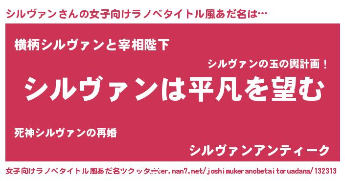 | 男性向けラノベタイトル風あだ名 | 『ダンジョンにシルヴァンを求めるのは間違っているだろうか』 |