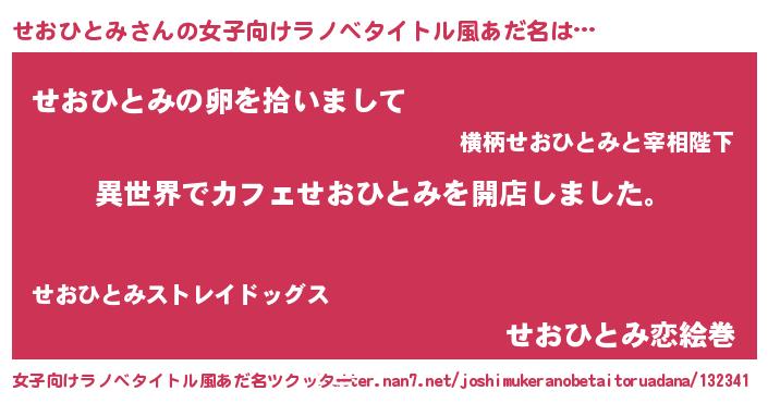 | 男性向けラノベタイトル風あだ名 | 『誰もが恐れるあのせおひとみが、ぼくの専属メイドになるようです。』 |