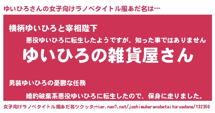 | 男性向けラノベタイトル風あだ名 | 『やはりゆいひろの青春ラブコメはまちがっている 』 |