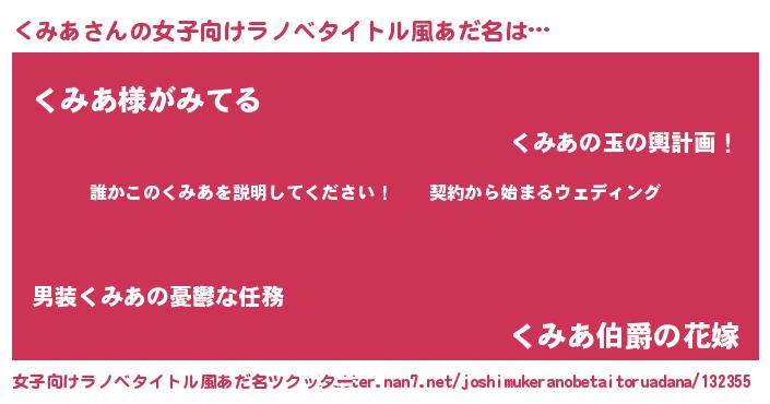 | 胡散臭い通販商品みたいなあだ名 | 『億万長者になれるブレスレット…その名も「くみあ」』 |