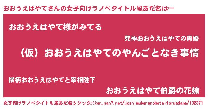 | 男性向けラノベタイトル風あだ名 | 『おおうえはやての憂鬱』 |
