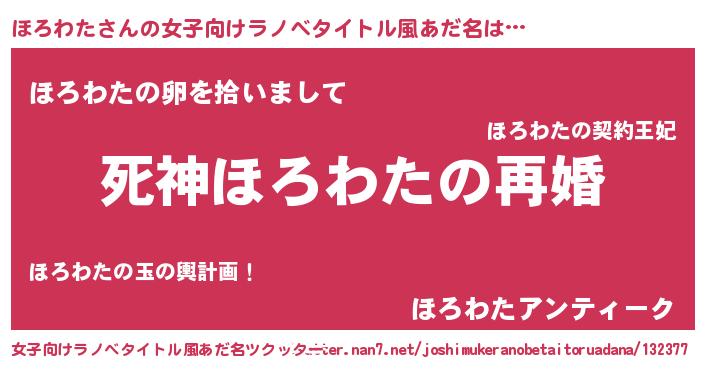 | 男性向けラノベタイトル風あだ名 | 『ノーゲーム・ノーホロワタ』 |