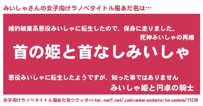 | 意味不明あだ名 | 『エリンギ科みいしゃ属』『自称みいしゃ』 |