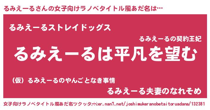 | 男性向けラノベタイトル風あだ名 | 『ダンジョンにるみえーるを求めるのは間違っているだろうか』 |