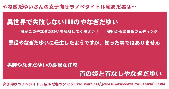 | 男性向けラノベタイトル風あだ名 | 『この素晴らしい世界にやなぎだゆいを!』 |