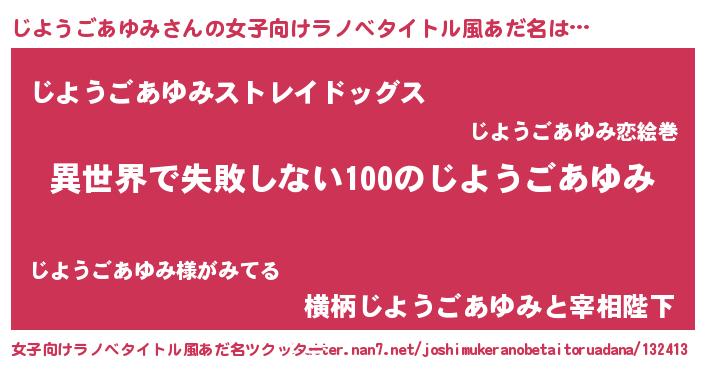 | 男性向けラノベタイトル風あだ名 | 『じようごあゆみという概念が存在しない退屈な世界 』 |