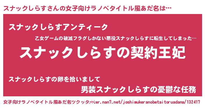 | 男性向けラノベタイトル風あだ名 | 『誰もが恐れるあのスナックしらすが、ぼくの専属メイドになるようです。』 |
