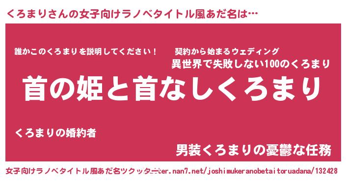 | 男性向けラノベタイトル風あだ名 | 『はたらくくろまりさま!』 |