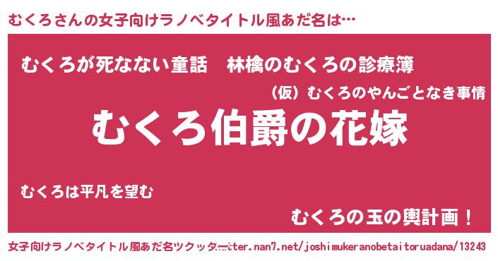 | 恥ずかしいあだ名 | 『むくっちょ』『プリティーむくろ』 |