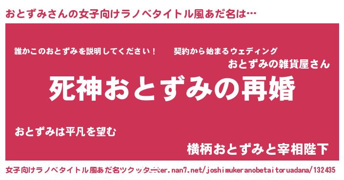 | 男性向けラノベタイトル風あだ名 | 『ノーゲーム・ノーオトズミ』 |