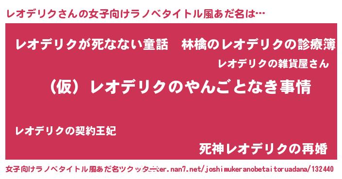 | 胡散臭い通販商品みたいなあだ名 | 『必ず成功するブレスレット…その名も「レオデリク」』 |