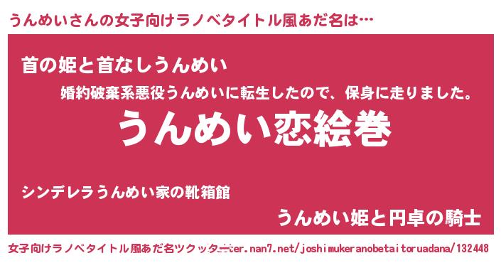 | ヒーロー風カッコイイあだ名 | 『慈愛の使者うんめい』『ネオウンメイ』 |