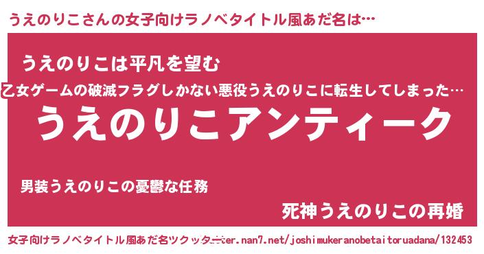 | 胡散臭い通販商品みたいなあだ名 | 『テレビで話題の高麗人参…その名も「うえのりこ」』 |