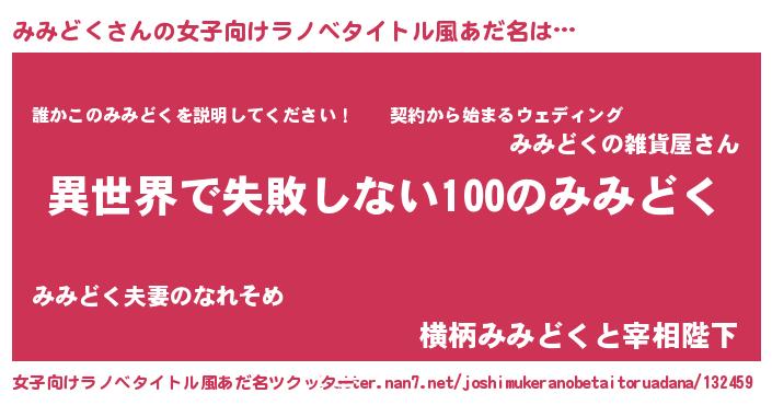 | 男性向けラノベタイトル風あだ名 | 『みみどくという概念が存在しない退屈な世界 』 |