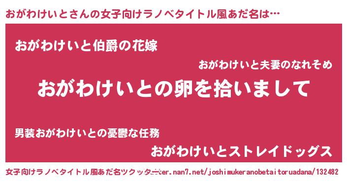 | 意味不明あだ名 | 『とにかく怪しいおがわけいと』 |
